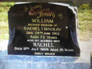 Rachel married William Mann McKay. (William Mann McKay died on Jun 24, 1962 in Dunedin, Otago, New Zealand 4 and was buried in Jun 1962 in Dunedin, Otago, New Zealand 4.)